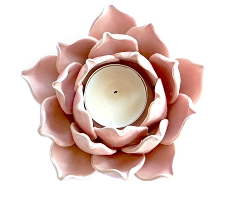 Bougeoir à fleurs de style pétales de lotus en céramique porte-bougies chauffe-plat décoration de maison et de table (rose) artisanat et cadeaux
