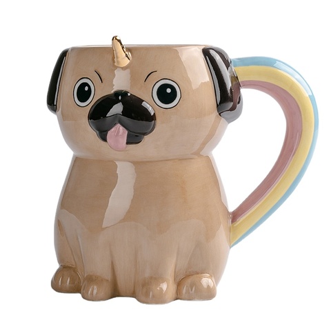 Tasse 3D en céramique pour carlin et chien, grande tasse à café, en forme de carlin et de licorne dorée, 350ml