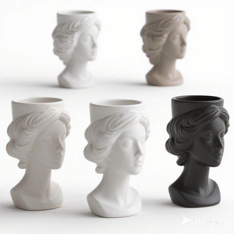 Vaso da donna in ceramica con testa bianca fioriera femminile, espositore floreale da 10 pollici, decorazioni per la casa Vintage, arte di ispirazione greca