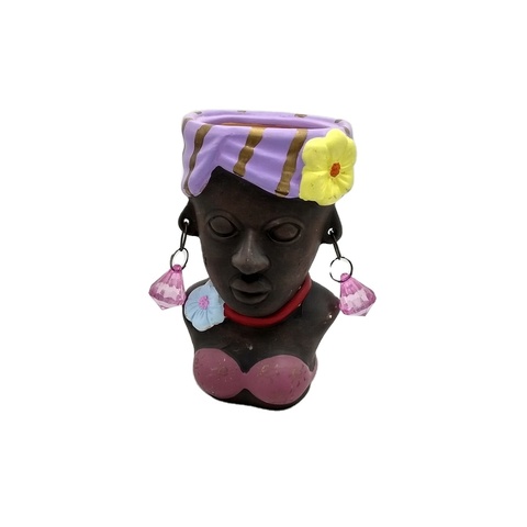 Afrikaanse Keramische Damesplanter Pot-Handgemaakte Fictieve Bloempot, Unieke Tuinplantenpotten, Boho Chique Decoratieve Plantenbak