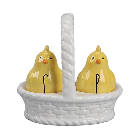 Joinste-Easter Chicken,Bunny,Egg Salt and pepper shaker with Basket holder ,Ceramic Set of 2 salt pepper shaker Spice container