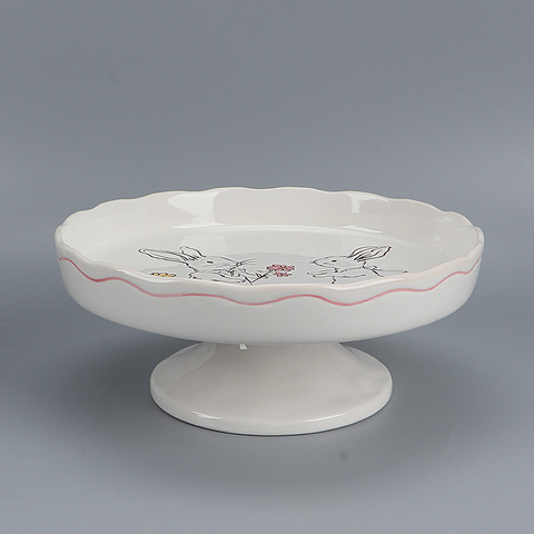 Joinste-Easter Bunny printing Ceramic Cake Stand, Round Dessert Stand, Cupcake Stand for Birthday Parties, Weddings