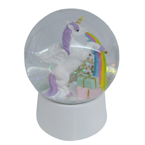 フラワーフェアリーライディングユニコーンスノーグローブ樹脂素材屋内スノーグローブスノーボールはOEM & ODMを受け入れます