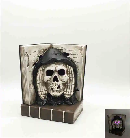 אור הוביל פסל ספר החיתולים עם יד הגולגולת צבוע, שרף