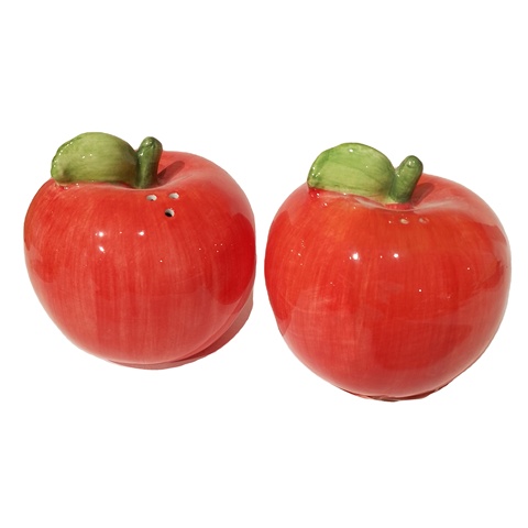 Red Apple Shape Gốm Muối và hạt tiêu Shakers Set, hand Painted, quà tặng tùy chỉnh & thủ công mỹ nghệ