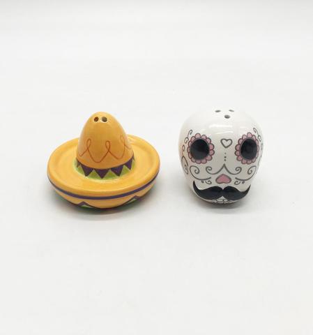 Bộ Lọ Lắc Muối Và Hạt Tiêu Bằng Gốm Hình Đầu Lâu Day Of The Dead, Vẽ Tay, Tùy Chỉnh Được