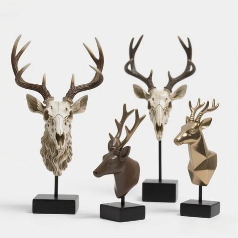 Figura rústica de hueso envejecido occidental, antílope, Cráneo en poste, figurita de Base, astas de cabeza de ciervo en soporte