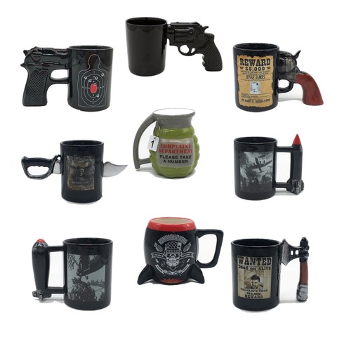 Tazas de cerámica para café, taza de pistola para regalo increíble, color negro, cualquier forma, cualquier volumen, caja blanca, novedad