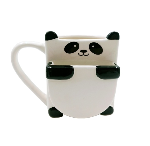 Taza de café de cerámica Panda Hug, porcelana de 300ml con tapa, incluye bolsillo para galletas o galletas, diseño moderno y bonito en caja
