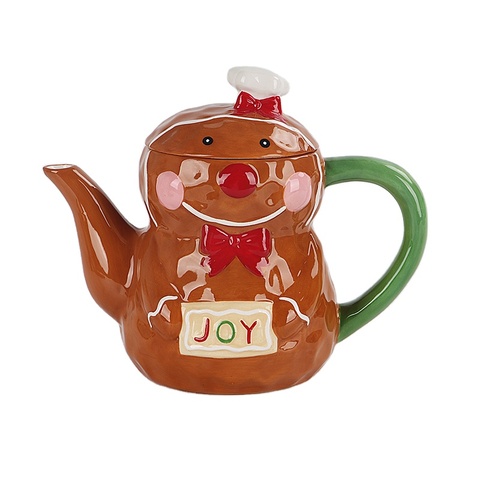 3D 진저브레드 맨 세라믹 찻주전자, 손으로 그린 3D 크리스마스 세라믹 커피 찻주전자 모든 모양과 크기