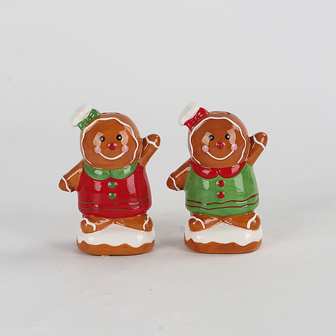 2023 크리스마스 진저 브레드 남자 모양의 세라믹 소금과 후추 통 세트, 사용자 정의 수락