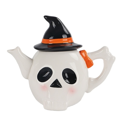 2023 해골 머리 모양 세라믹 주전자, 손으로 그린 3D 할로윈 세라믹 커피 차 주전자 어떤 모양과 크기