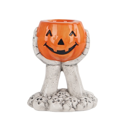 호박 촛대 홀더 6.5 "H 손으로 그린 세라믹 해골 손