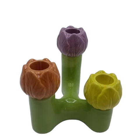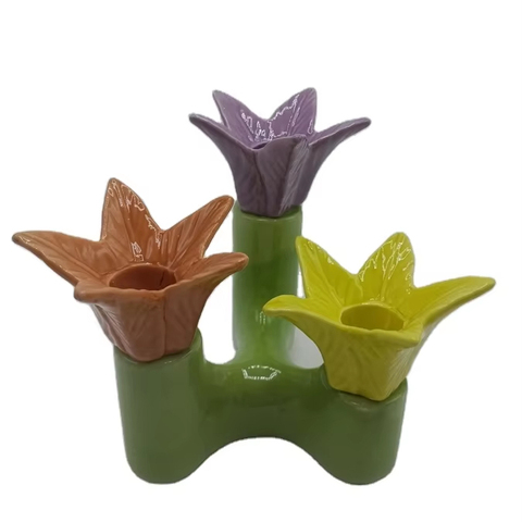 Tabletop hoa gốm nến với 3 cánh tay, trang trí gốm Hoa người giữ ngọn nến