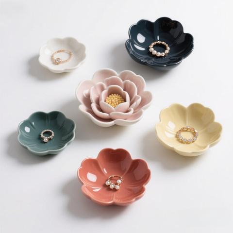 Hoa hình nhỏ Bát chìa khóa, Gốm đính khay đồ trang sức món ăn tổ chức Vòng cổ bông tai