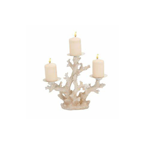 Suporte de vela de resina personalizado, suporte de velas coral branco 3 braços para decoração de casa e hotel
