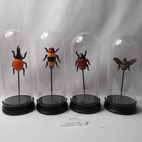 Estátua de inseto de resina, resina artificial vários insetos design animal escultura com cilindro cobertura de vidro para decoração de tablet