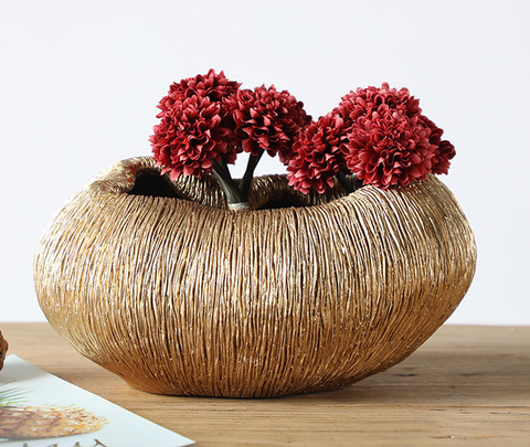 Vaso de resina coral de ouro, vaso de escultura de flores nórdicas modernas em formas diferentes para decoração de casa, hotel e tablet
