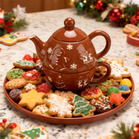 Рождественский керамический чайный сервиз: чайник и чашки с узорами имбирного человечка, оленя и снежинок, штабелируемый, подарочный набор для чаепития