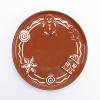 Рождественская керамическая тарелка с рельефным узором: пряничный человечек, снежинка и домик. Круглая декоративная сервировочная тарелка для стола.