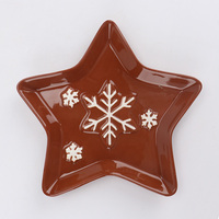 Керамическая тарелка коричневого цвета в форме звезды с рельефным узором «Снежинка», рождественская декоративная посуда, праздничный подарок, сервировочный набор