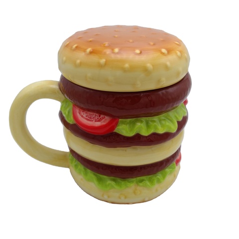Керамическая кружка в форме бургеров, многоразовая керамическая кофейная кружка с ручной росписью и крышкой на заказ